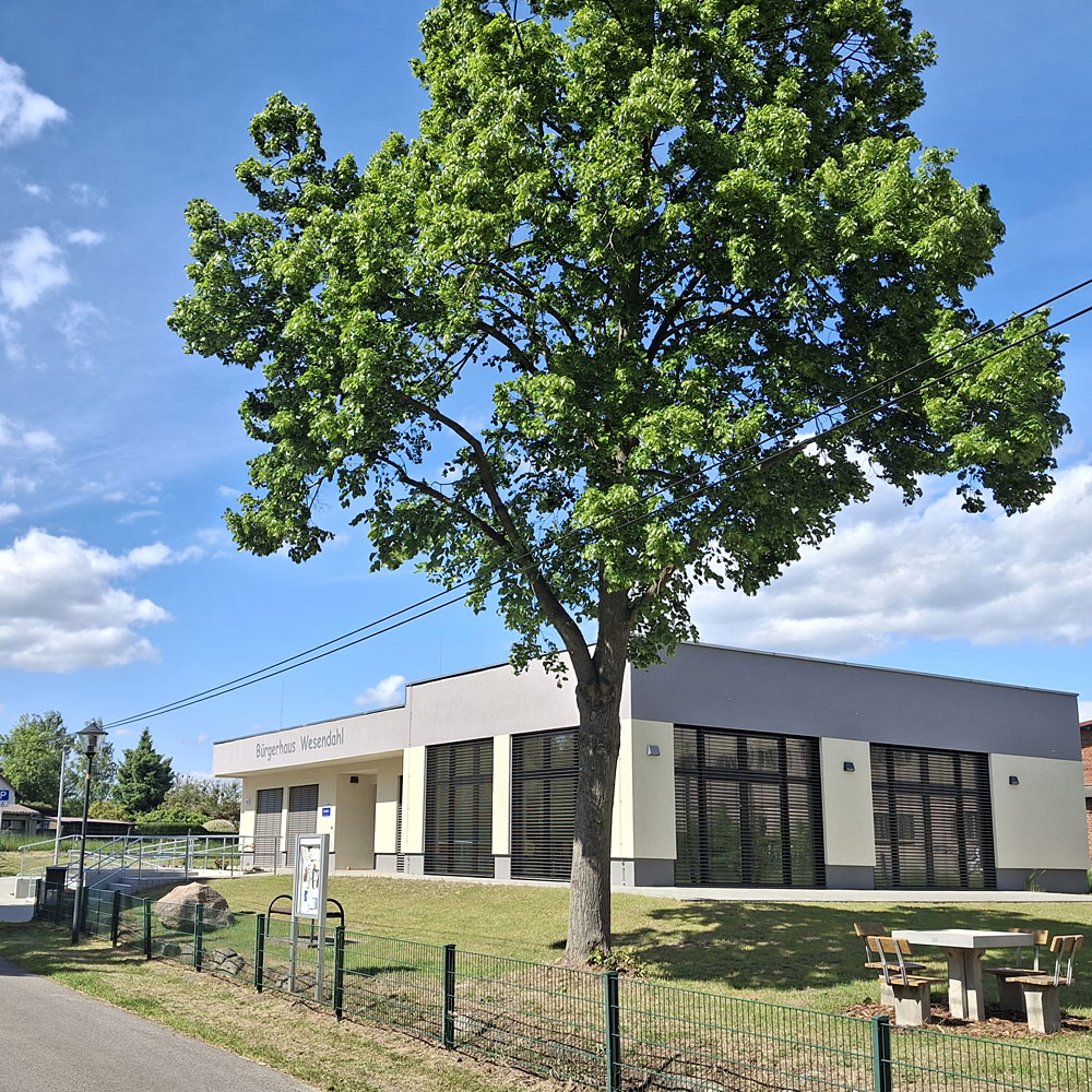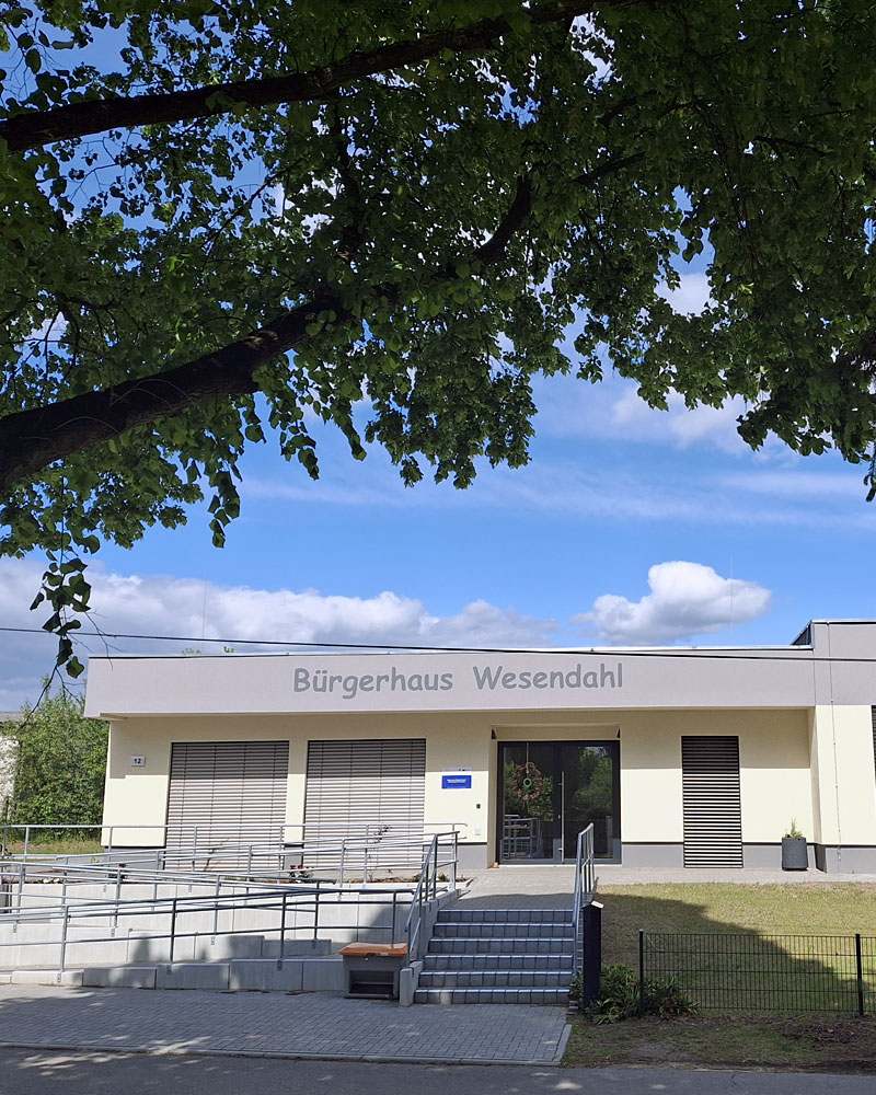 Das Bürgerhaus Wesendahl ist ein offenes Haus für alle Bürgerinnen und Bürger aus Wesendahl, Altlandsberg und Umgebung. Neben einem vielseitig nutzbaren Veranstaltungsraum steht im Bürgerhaus auch eine Bibliothek zur Verfügung – ein ruhiger Ort zum Lesen, Lernen und Verweilen.